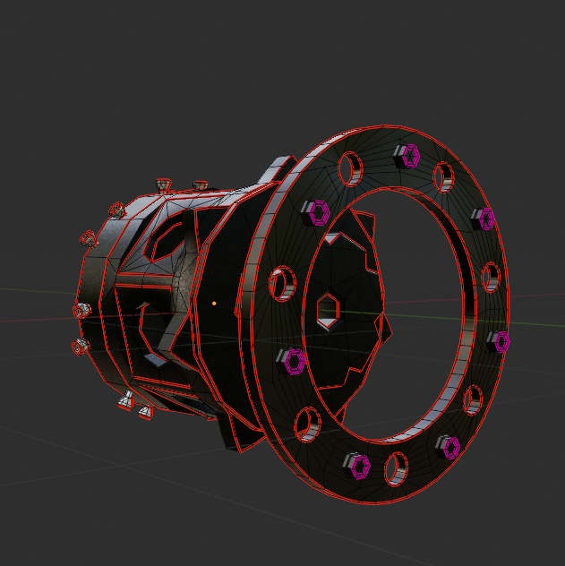 So in cases like that, I import the model into Blender and rebuild the part as closely as possible to the original. So far, this has produced better results for me than just using the output from PiXYZ. With the example shown, I made a few decisions based on the intended use, because this part of the model will remain static and won’t be interacted with, I decided to remove the holes for the bolts and have them intersect the mesh. This massively simplified the mesh, reduced polycount and made for a much easier UV unwrap. The plus side is that it will have no negative effect downstream in the game engine, and if the use case changes and the bolts somehow become important (unlikely…), the topology is now very easy to adapt.